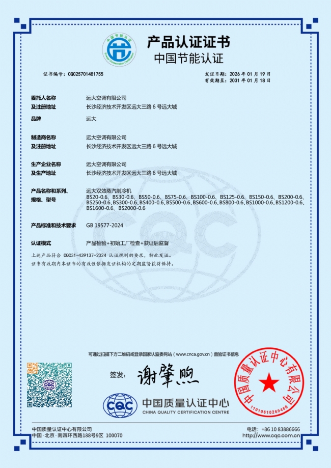 节能产品认证_空调双效蒸汽制冷机BS-0.6_中国质量认证中心