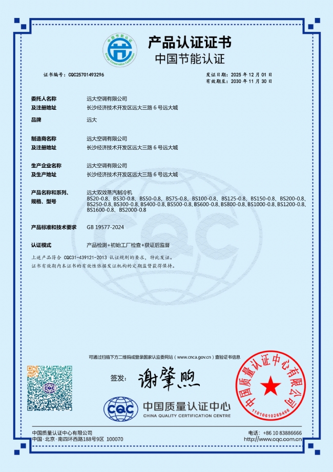 节能产品认证_空调双效蒸汽制冷机BS-0.8_中国质量认证中心
