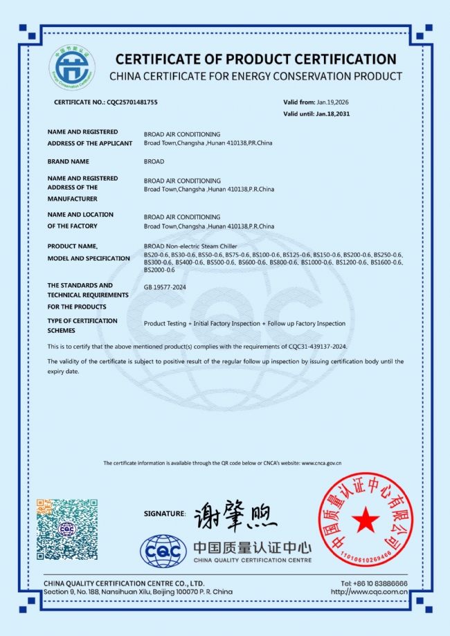 节能产品认证_空调双效蒸汽制冷机BS-0.6_中国质量认证中心英文版