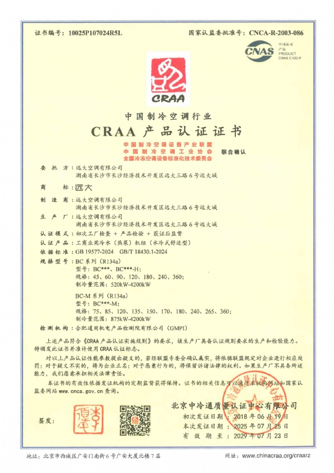 CRAA认证证书_节电空调