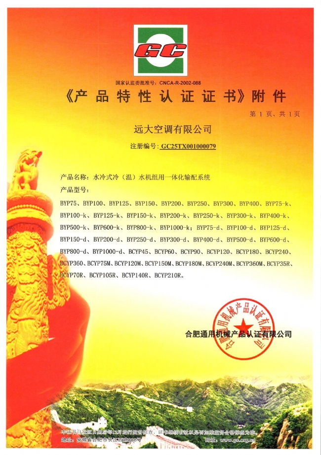 水冷式冷(温)水机组用一体化输配系统特性认证