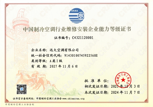 证书:中国设备维修安装企业能力等级证书
