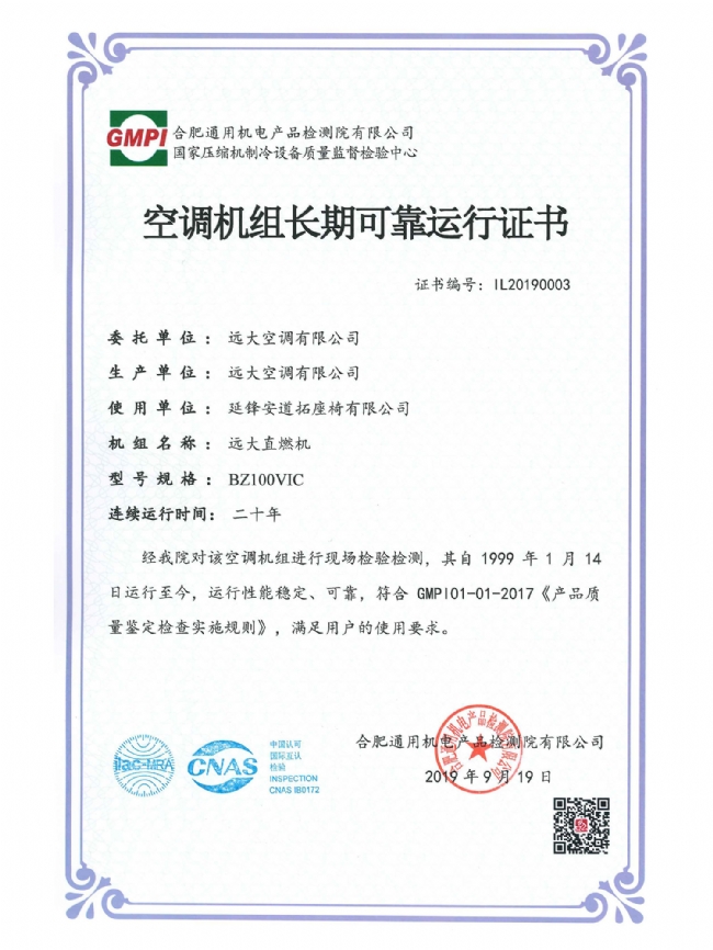 证书名称:空调机组长期可靠运行证书_2