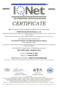 可建职业健康安全管理体系ISO 45001-IQNET证书